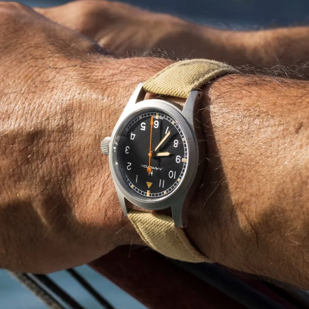 Another honorable mention is the Hamilton Khaki Field LE For Hodinkee, who’s clean Arabic numerals and simple time-only aesthetic make it the perfect choice for enthusiasts. The orange second hand provides a pop of colour while at the same time staying true to the utilitarian look (note the use of orange on the Rolex Explorer 2’s 24hr hand and on the recent Apple Watch Ultra).